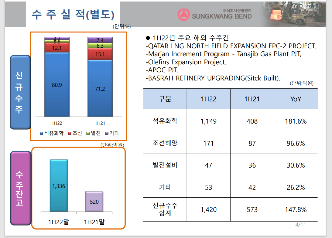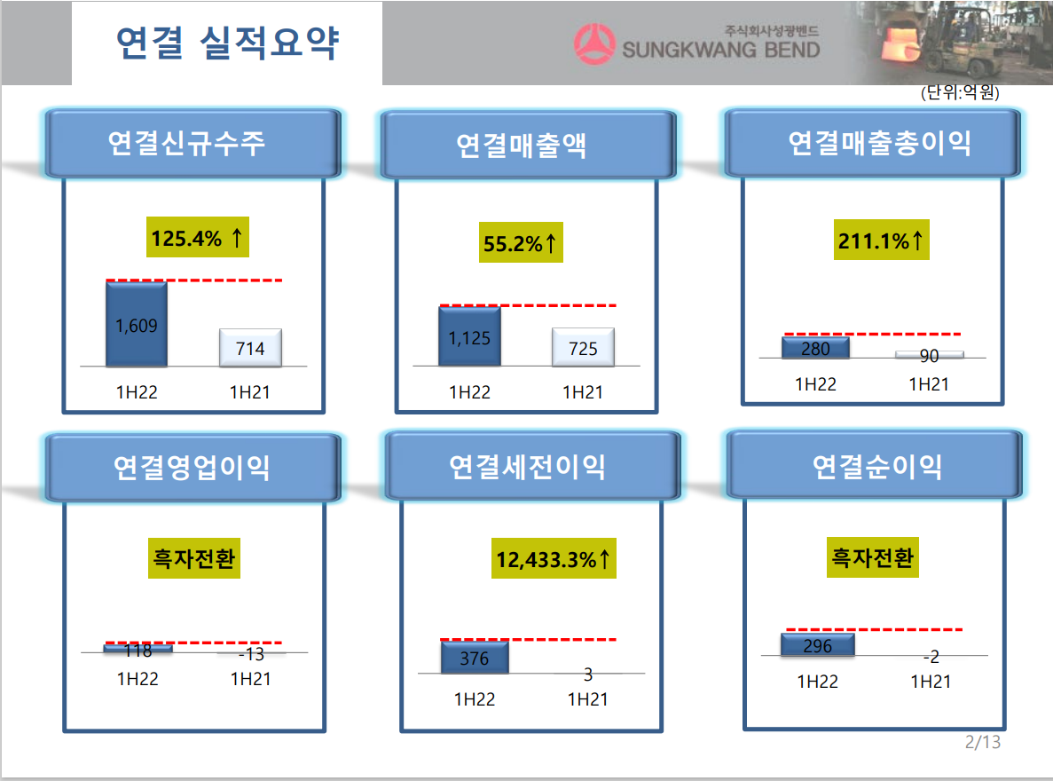 1분기 수주액 712억원, 2분기 709억원을 기록하며 2013년 4분기 이후 9년만에 분기 수주 액이 700억원을 돌파했다.