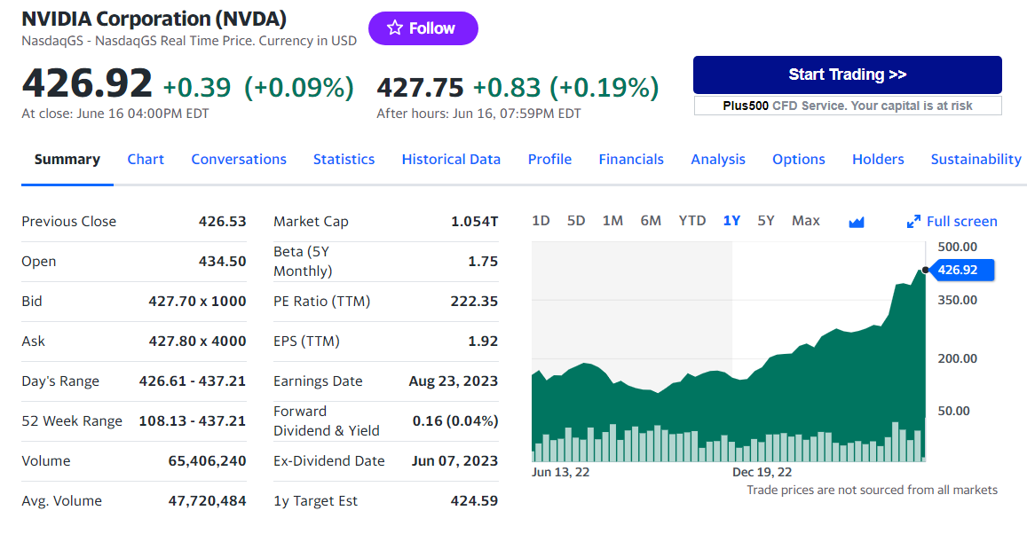 현재 Nvidia 주식은 과거 12개월 이익에 대해 약 218배,