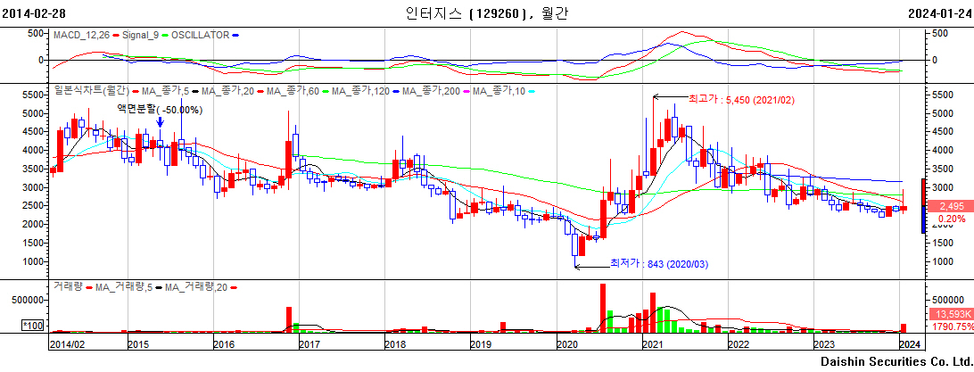 1. 다음은 인터지스의 월봉 그래프