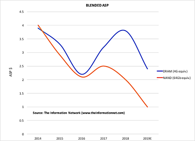 The problems in the memory markets are a confluence of several factors - high ASPs from undersupply, low ASPs from oversupply, a slowdown in PCs and smartphones, double purchasing by customers to avoid further price increases resulting in inventory overhang, and the U.S.-China trade/technology war impending demand.