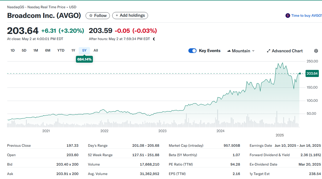 하지만 앞으로 매수 기회가 올 수도 있습니다. Broadcom의 베타값(주가 변동성 측정 지표)이 높기 때문입니다.