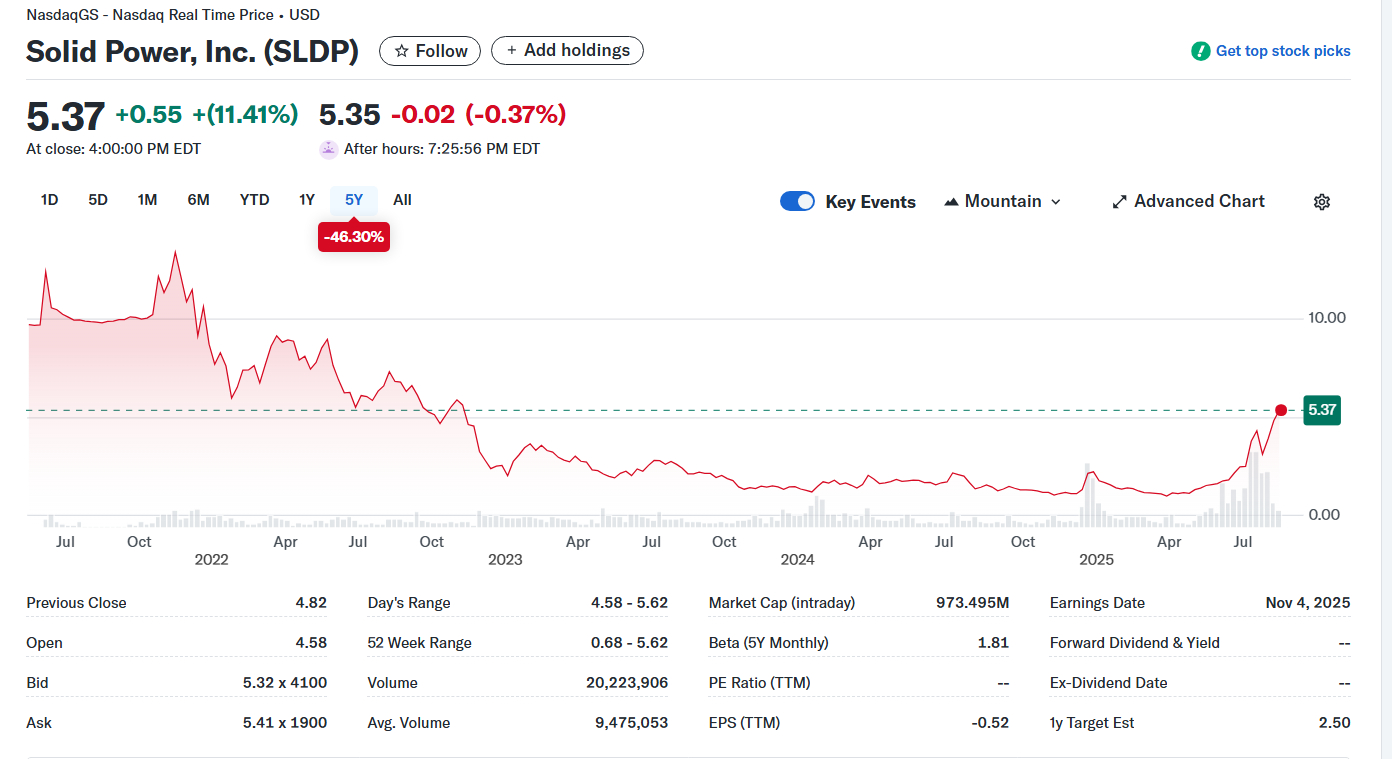 Solid Power, Inc. (SLDP) Stock Price, News, Quote & History - Yahoo Finance