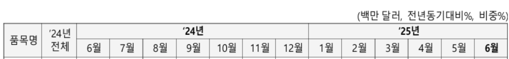 | 2025년6월및 상반기 수출입 동향 (4) | 2025.08.01 |