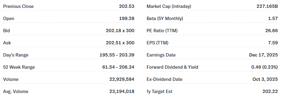 이달 초 처음으로 200달러를 돌파한 뒤, 주가는 깃발형(페넌트) 패턴 안에서 조정을 거쳤으며,