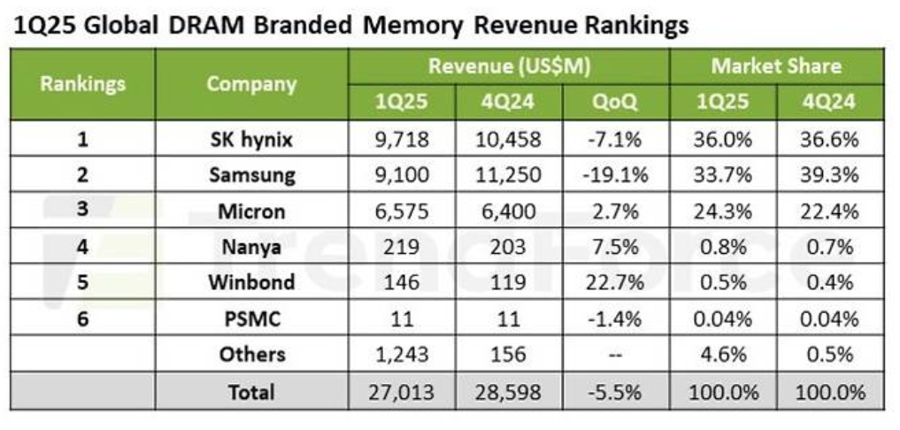 시장조사기관 중국의 CFM에 따르면 2025년3분기 글로벌 디램 매출은 전분기대비 24.7% 증가한 400.37억달러,