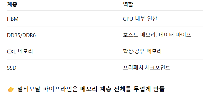 아래는 왜 멀티모달이 HBM/DRAM 수요를 ‘구조적으로’ 폭발시키는지를 연산 구조·메모리 접근 패턴·시스템 규모 관점에서