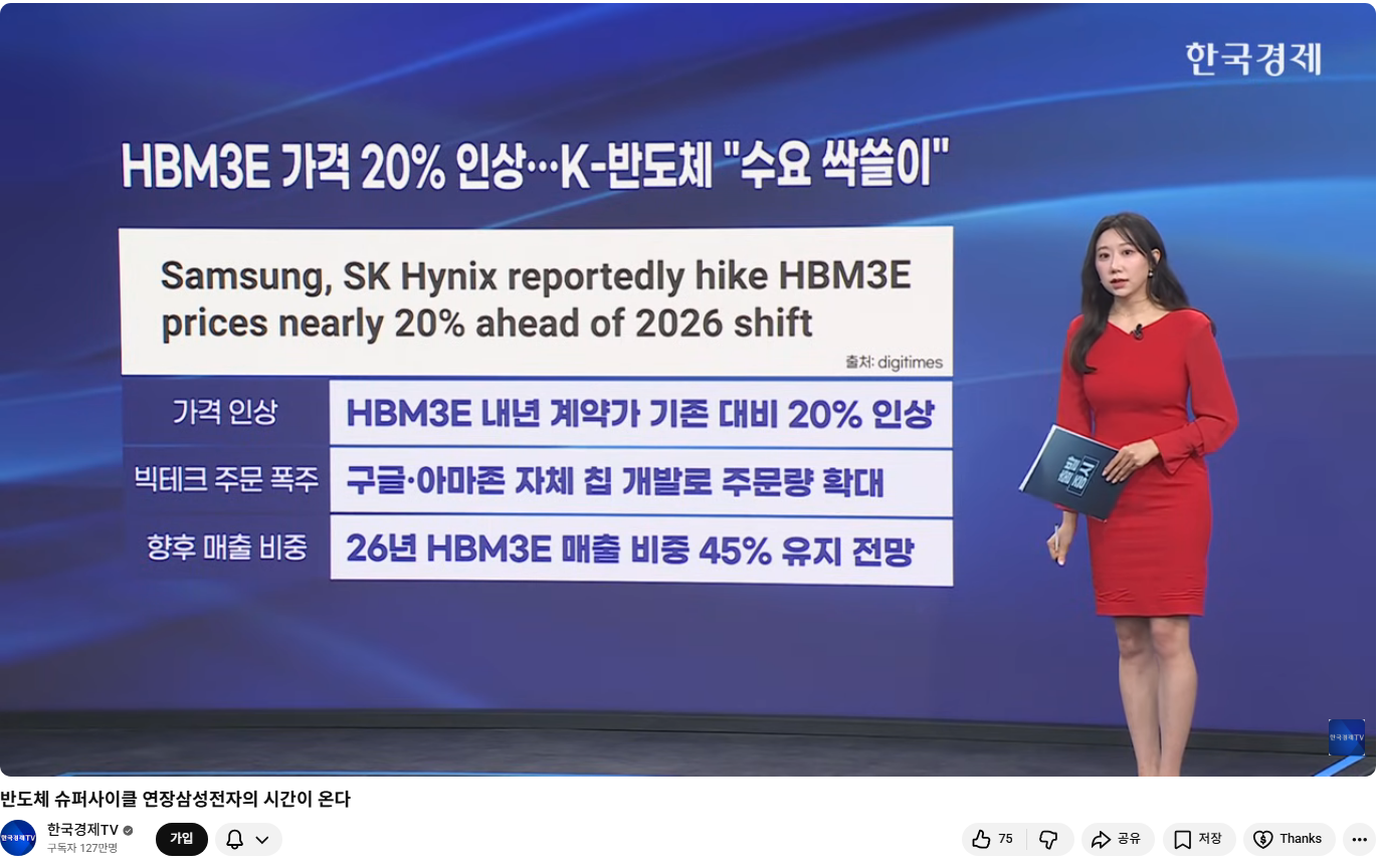 | 삼성·SK하이닉스 HBM 공급 부족에 MS·구글 '패닉'(2025.12.26) (0) | 2025.12.26 |