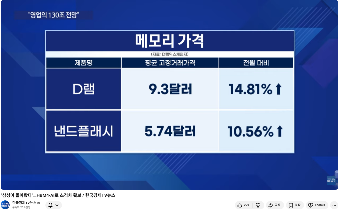 | 2026년 1분기 범용 DRAM 계약 가격은 전 분기 대비 55~60% 상승할 것(2025.01.05) (1) | 2026.01.05 |