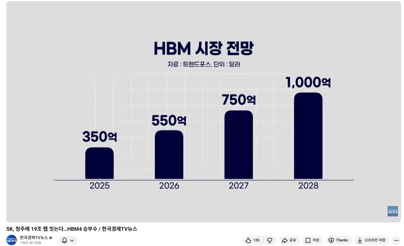 반면 SK하이닉스는 이미 HBM 공급 계약을 다수 확보한 상태이기 때문에, 2026년 전체 HBM 비트(bit) 기준 공급 점유율에서는 여전히 압도적인 지위를 유지할 것으로 예상된다.