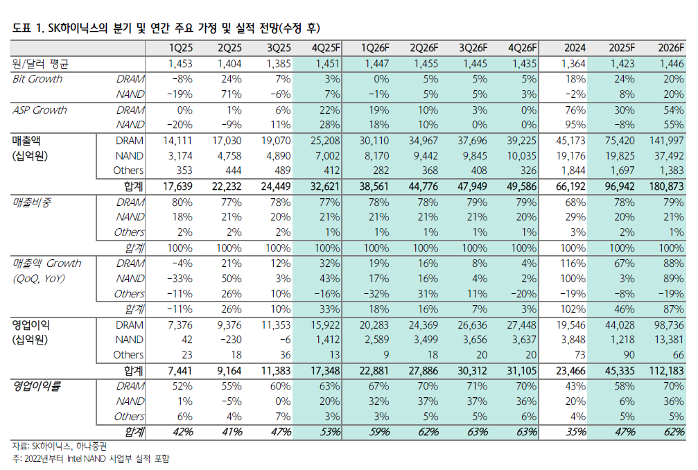 하나증권은 SK하이닉스의 2026년 영업이익을 112조원으로 추정하면서