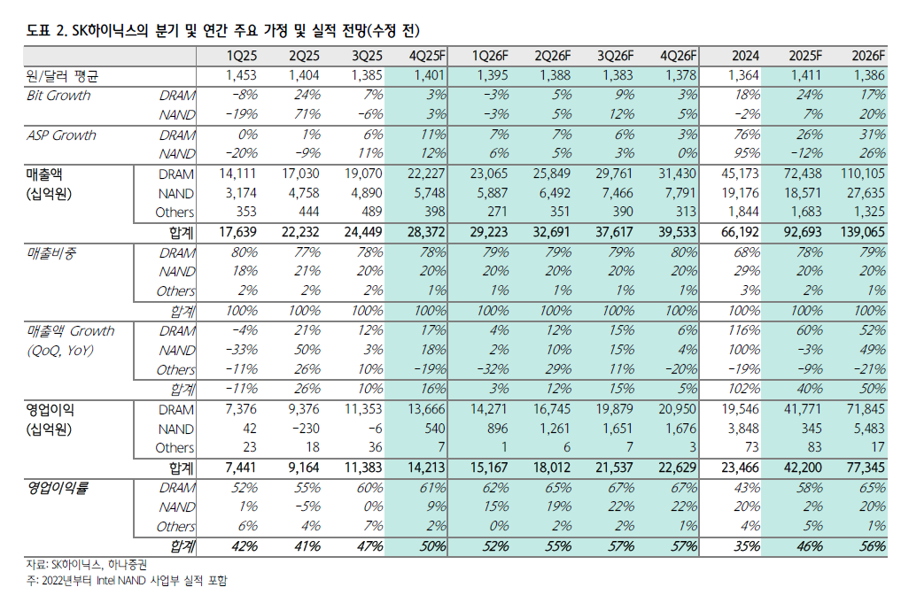 2026년 연간 DRAM 가격은 54%, NAND는 55% 상승할 것으로 가정한다.