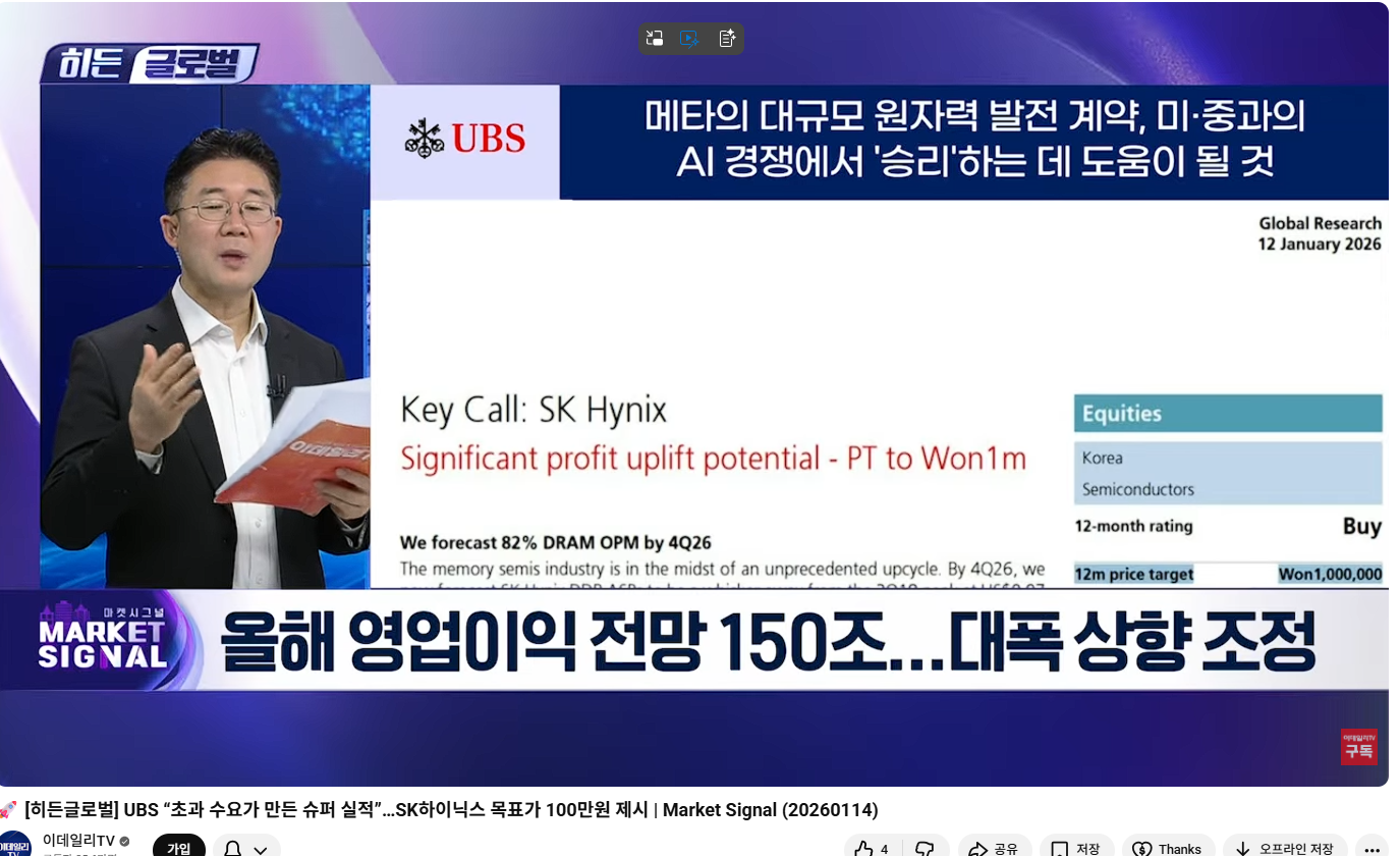 🚀 [히든글로벌] UBS “초과 수요가 만든 슈퍼 실적”…SK하이닉스 목표가 100만원 제시 | Market Signal (20260114)