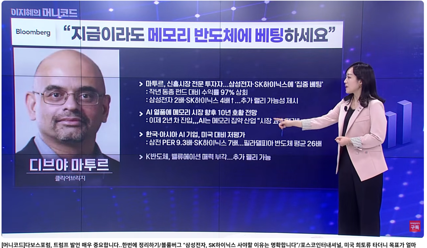 메모리 관련 주식은 상승할 것으로 예상된다. - 마투르가 운용하는 펀드는 삼성전자와 SK하이닉스에 대해 큰 비중의 투자를 하고 있으며,
