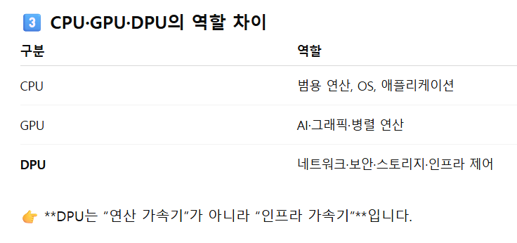 (주: DPU(Data Processing Unit)는 데이터센터에서 네트워크·보안·스토리지·인프라 관리 같은 작업을