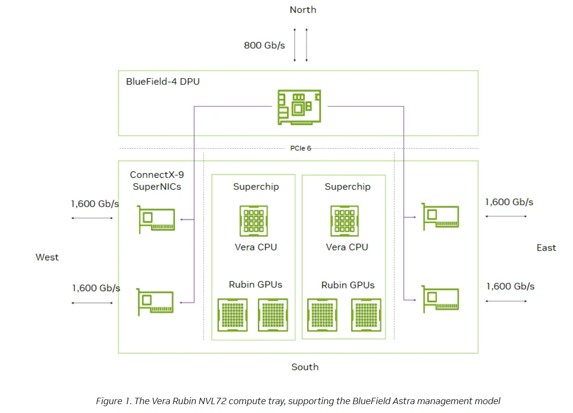As shown in Figure 1, BlueField Astra establishes a direct path between the BlueField-4 DPU and ConnectX-9 SuperNICs, creating a unified control architecture. This delivers: