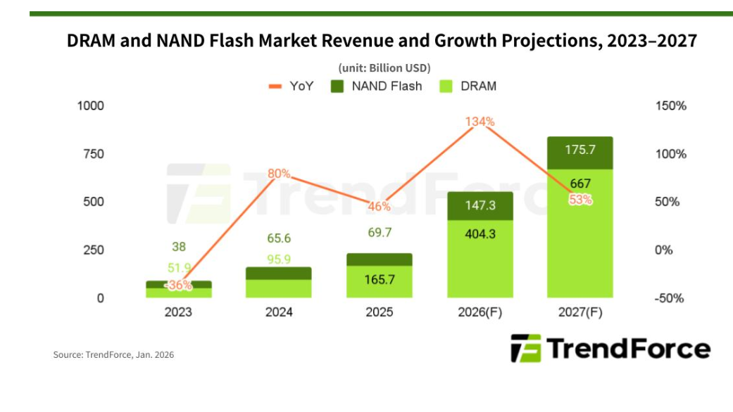 메모리 시장 전반을 보면, 공급 부족 현상은 쉽게 해소되지 않고 있으며, 가격 결정력은 여전히 공급업체에 유리하게 작용하고 있습니다. TrendForce는 AI 붐이 하드웨어, 시스템 아키텍처, 소프트웨어 전반에 걸쳐 확산되면서 메모리가 대체 불가능한 핵심 요소로 자리 잡고 있다고 평가했습니다.