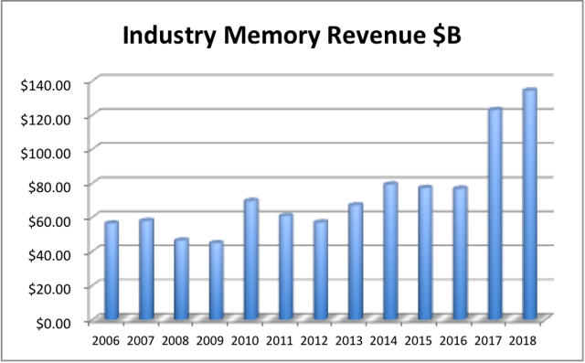아래는 메모리 산업은 호황과 불황이 약 1년반에서 2년 주기로 반복되는 산업으로