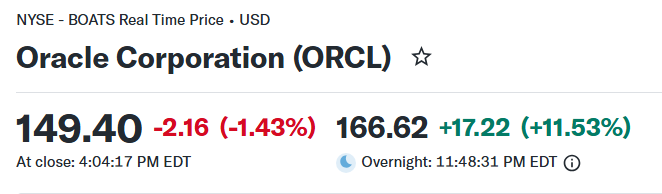 오라클 3분기(12월~2월) 호실적 발표로 시간외 11% 상승중.
