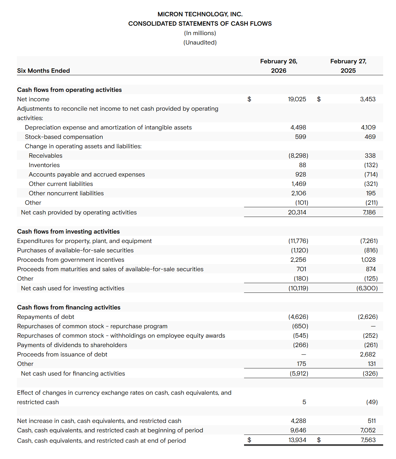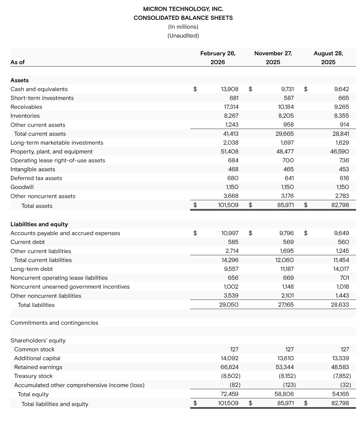 분기 말 기준으로 Micron은 현금, 유가증권, 제한된 현금을 포함해 총 167억 달러의 유동 자산을 보유하고 있다.