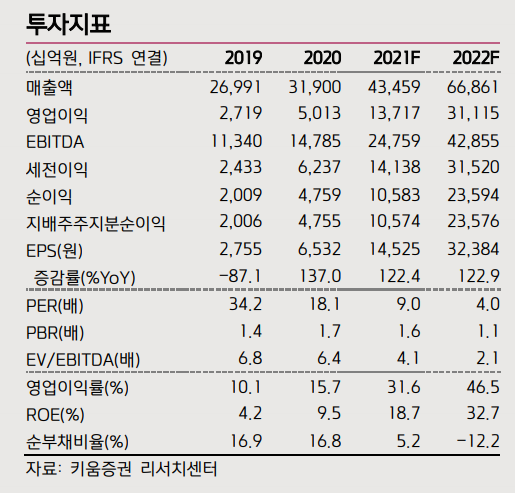 동사 2Q21 출하량이 1Q21 수준을 유지만 하더라도 당사의 기존 2Q21 출하량 전망치보다 오히려 2% 높게 된다.
