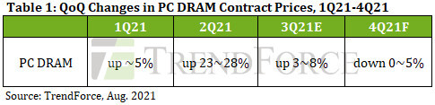TrendForce therefore forecasts a 0-5% QoQ decline in PC DRAM contract prices for 4Q21.