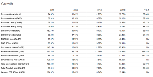 AMD has lower valuation ratios but it has better growth performance stats than NVDA. The 3-year revenue CAGR of AMD is 28.23%. This is significantly higher than NVDA’s 20.58% and Intel’s pitiful 5.43%. Nvidia’s EBITDA 3-year CAGR is only 18.79%, again significantly lower than AMD’s 73.97%. AMD is a buy because AMD’s impressive growth performance will only get better. NVDA has no embedded x86 processor to sell. Intel is mighty busy trying to slow down Ryzen’s growth in PC processors. Intel cannot focus on embedded x86 processors for medical imaging because EPYC is helping AMD breach 10% market share in server processors.
