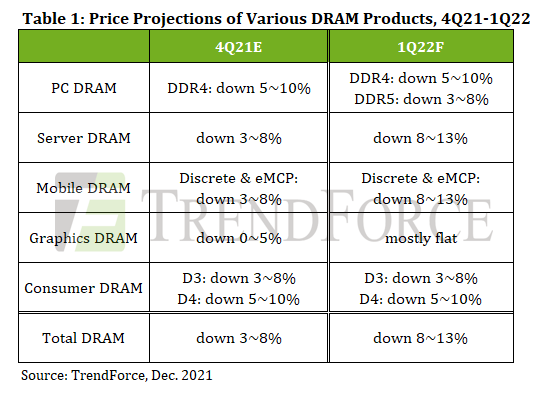 The short-term outlook for DRAM prices is negative, but chiefly because of seasonal factors. I believe DRAM prices will rebound after Q1'22 as seasonal factors subside and demand returns to memory chip makers. TrendForce previously said that DRAM prices could rally in the second half of 2022 as seasonal demand is expected to return at this time.