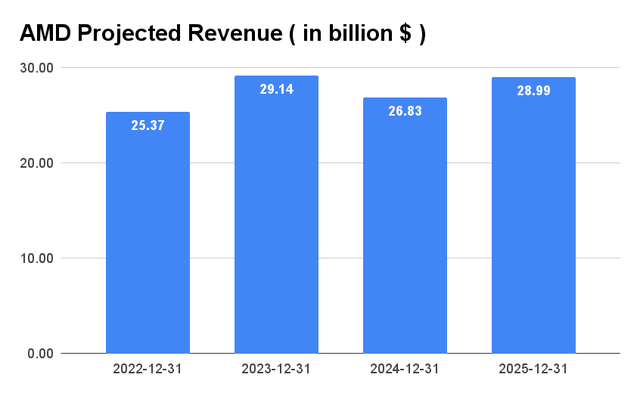 In addition, it is quite clear that the market will experience a massive boom in the next few years, given the enormous demand for server-related products from multiple global cloud providers and enterprises as discussed above. The data center market predicted growth from $230B to $519B by 2025, at a CAGR of 21%. Based on our aggressive estimates, we may see AMD's data center-related market share to rise from 10.7% in 2021 to 20% in 2025, with further growth in the x86 market from 25.6% in 2021 to over 35% by 2025. However, we also expect to see its growth rate decelerate over time, given the easing of the global supply chain issues from 2024 onwards.