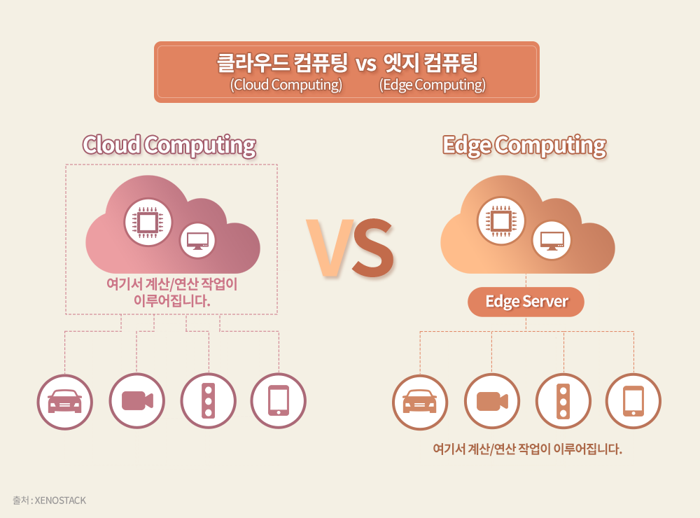 2) 엣지 컴퓨팅(Edge Computing): 생성된 데이터를 중앙의 대규모 서버로 전송하지 않고 데이터가 생성된 기기 자체에서 처리하거나 데이터가 발생한 곳과 가까운 소규모 서버로 전송해 처리하는 컴퓨팅 방식을 말한다.