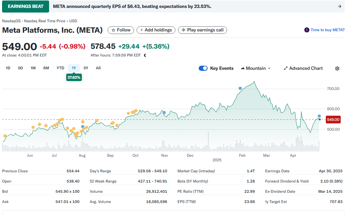 메타(META)는 2025년 1분기를 강하게 출발하며, 예상치를 상회하는 실적을 발표하고,