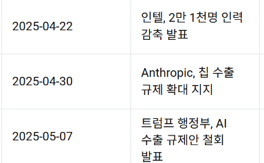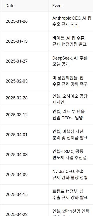 2025년 미국 반도체 시장 연표(2025.05.11)