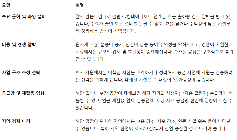 월스트리트 저널 등에서는 이 발표를 두고 “골판지 수요 침체가 실제 산업 구조 전환을 강제하고 있다”는 분석을 덧붙이기도 했습니다. 월스트리트저널+1