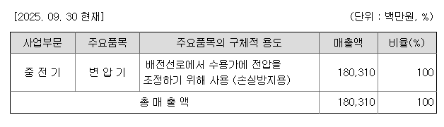 당사는 전압을 조정하기 위해 사용하는 변압기 등을 생산, 판매하고 있으며,
