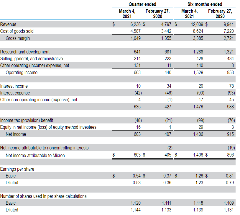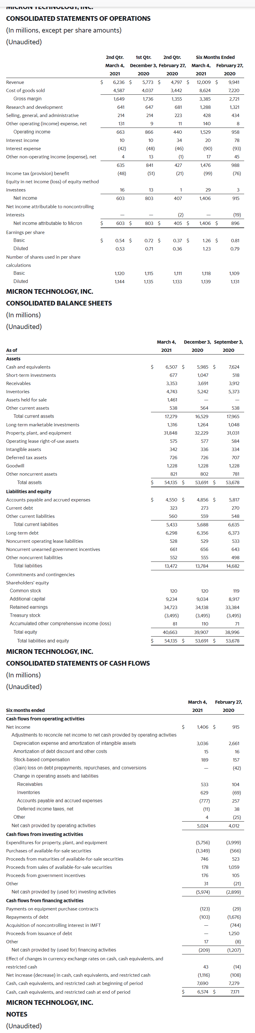 Micron Technology, Inc. 10-Q Apr. 1, 2021 1:49 PM | Seeking Alpha