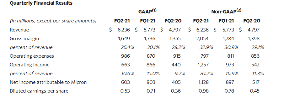 "Micron's strong fiscal second-quarter performance reflects rapidly improving market conditions and continued solid execution," Chief Executive Sanjay Mehrotra said in a news release.