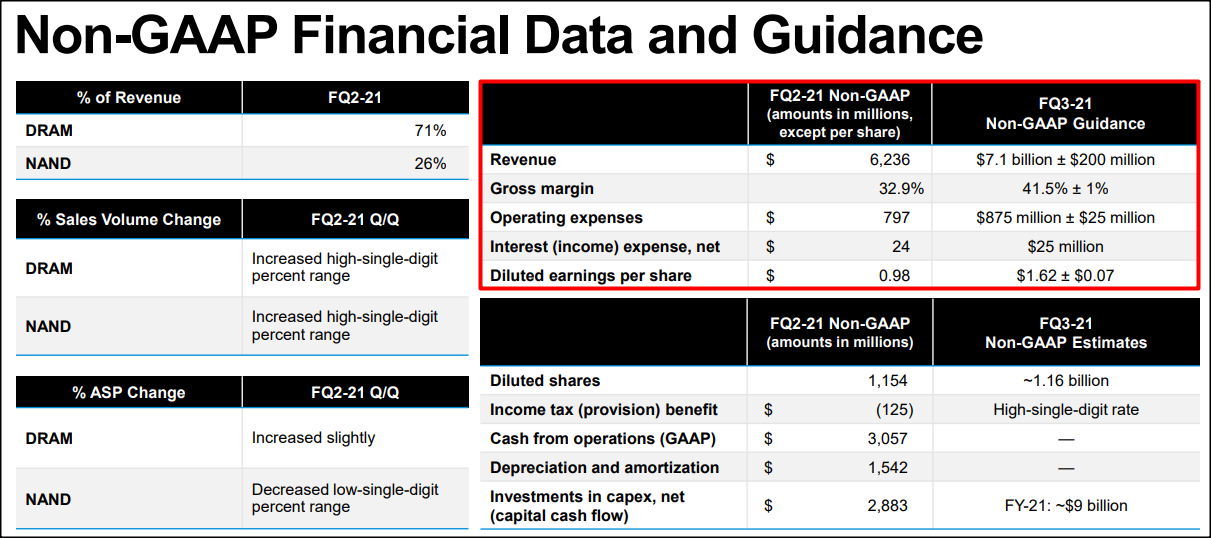 마이크론의 3분기(3월-5월말) 매출은 71억달러(플러마이너스 2억달러)로 예상하며, 다음 실적 발표시