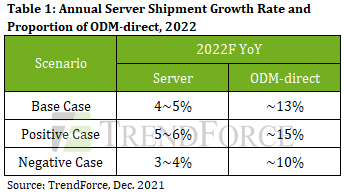 앞서 언급한 두 가지 가정을 바탕으로 내년에 팬데믹이 효과적으로 통제되고 국제 물류, 자재 수요 만족 등 기타 요인이 정상화되거나 예상보다 운임이 좋아진다면 서버 업체들의 배송 능력과 전체 서버 시장의 연간 출하 성장률은 5-6%에 도달할 수 있는 반면, ODM-Direct의 연간 성장률은 원래 예측 13%에서 상승한 15%에 도달할 것입니다.