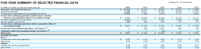Sources: Citigroup's 10-Ks and 10-Qs from 2002 through the present