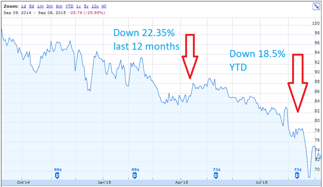 Exxon Mobil Corporation (XOM) is a good case example, as the normally resilient firm is down substantially as of late.